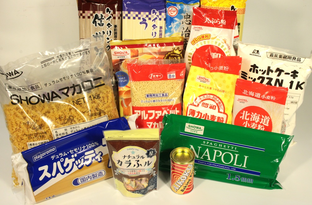 基本となる小麦粉、パスタ、乾麺等多くのメーカーの商品を広く取り扱いしております。