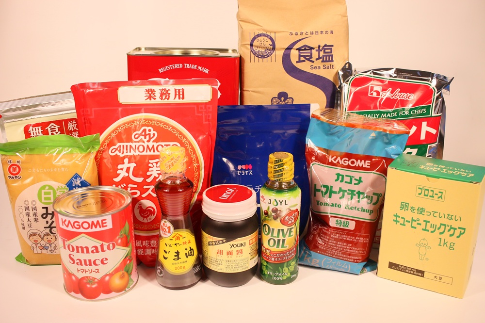 調理に必要な調味料を数多く取り揃えております。アレルギー対応品も近年多くなっておりますので、ぜひご相談ください。